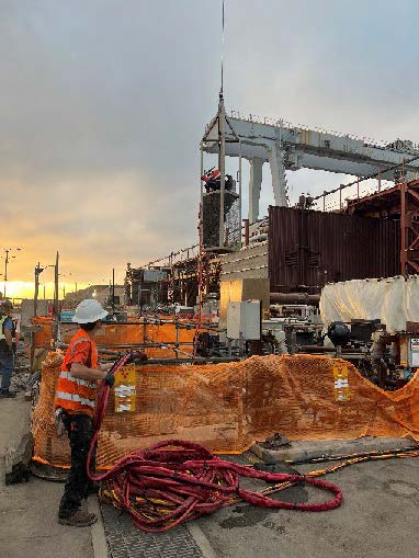 SONGS located in San Clemente, CA was decommissioned and dismantled. C&W provided diver support to isolate the onshore intake structure from the Pacific Ocean. Diver support was required to remove/clean/reinstall bulkheads with inflatable seals. C&W was contracted to engineer and design a grout bag support structure and a 30’x16’x16’ grout bag. C&W removed all marine growth from the outfall tunnel and installed a steel support structure. Divers performed a 300 yd+ concrete pour to fill the custom-engineered ballistic nylon plug with a support structure to permanently seal the nuclear cooling system from the Pacific Ocean.